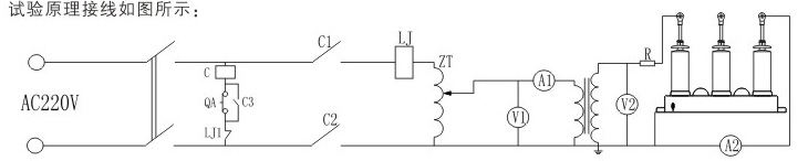按原理圖將相關(guān)儀表和設(shè)備連接好。測(cè)試前應(yīng)首先將電流繼電器LJ的整定值調(diào)至最小值(作為后備保護(hù)),然后將試驗(yàn)變壓器空載升壓,電流繼電器LJ應(yīng)不動(dòng)作,將數(shù)字電流表A1的雖程調(diào)至5?20A(5KVA及以下容里試驗(yàn)變壓器可不加限流電阻Rl。